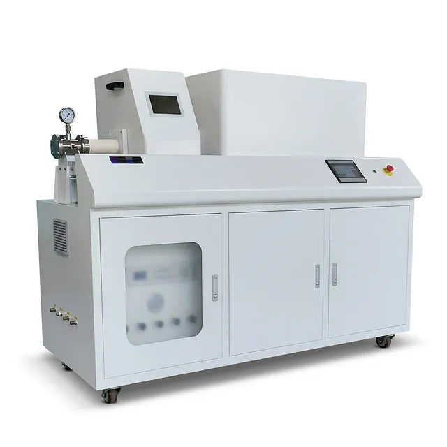 Sistema PECVD Deslizante KT-PE12: Ampla faixa de potência, controle de temperatura programável, aquecimento/resfriamento rápido com sistema deslizante, controle de fluxo de massa MFC e bomba de vácuo.