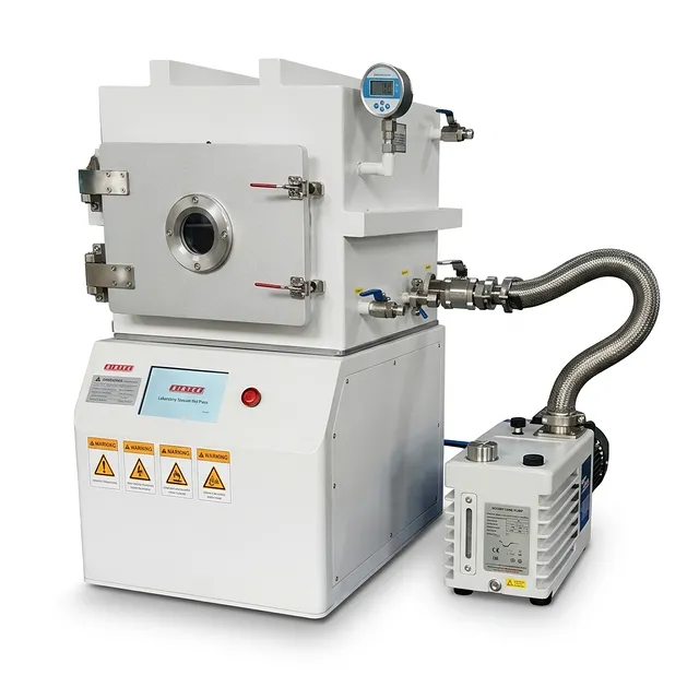 Prensa térmica a vácuo de precisão para laboratórios: 800°C, 5 toneladas de pressão, vácuo de 0,1 MPa. Ideal para compósitos, células solares, aeroespacial.